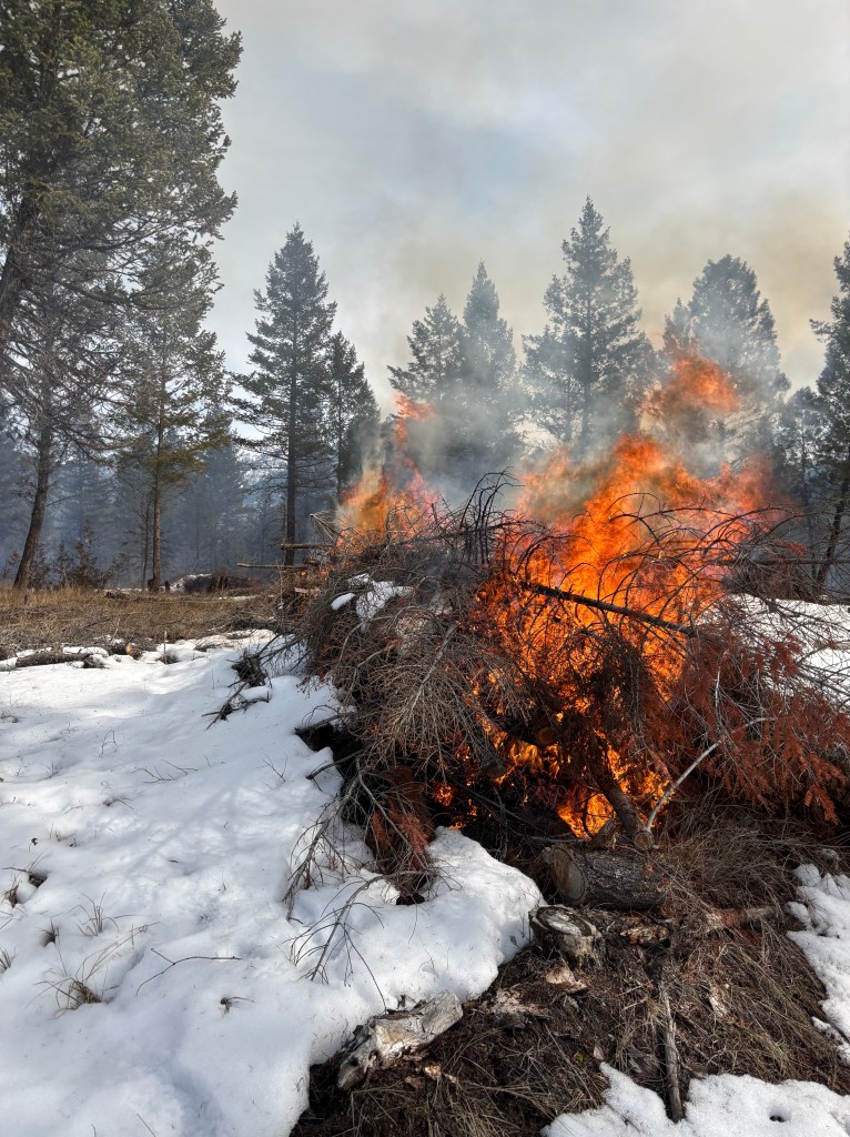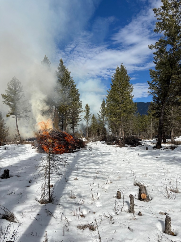 Fence Removal Project 2025 This project is removing sections of fence between Nature Conservancy Land and Parks Canada Land to facilitate the movement of wildlife between the two areas.Working here we have seen many signs of wildlife like these wolf tracks as well as coyote, deer, elk, and rabbit tracks.Slash Abatement Project (2024/2025) This area is a conservation area home to a wide variety of animals including the endangered American Badger.Piles of slash debris are burned as part of a wildlife habitat restoration project.Noise Reduction Planting Project (2023)Trees and shrubs were planted on a berm.The plants will grow into a natural noise reduction barrier.Ecosystem Restoration Project (2022)Selected trees and shrubbery were cut down.Some of the slash was moved into piles and burned.
